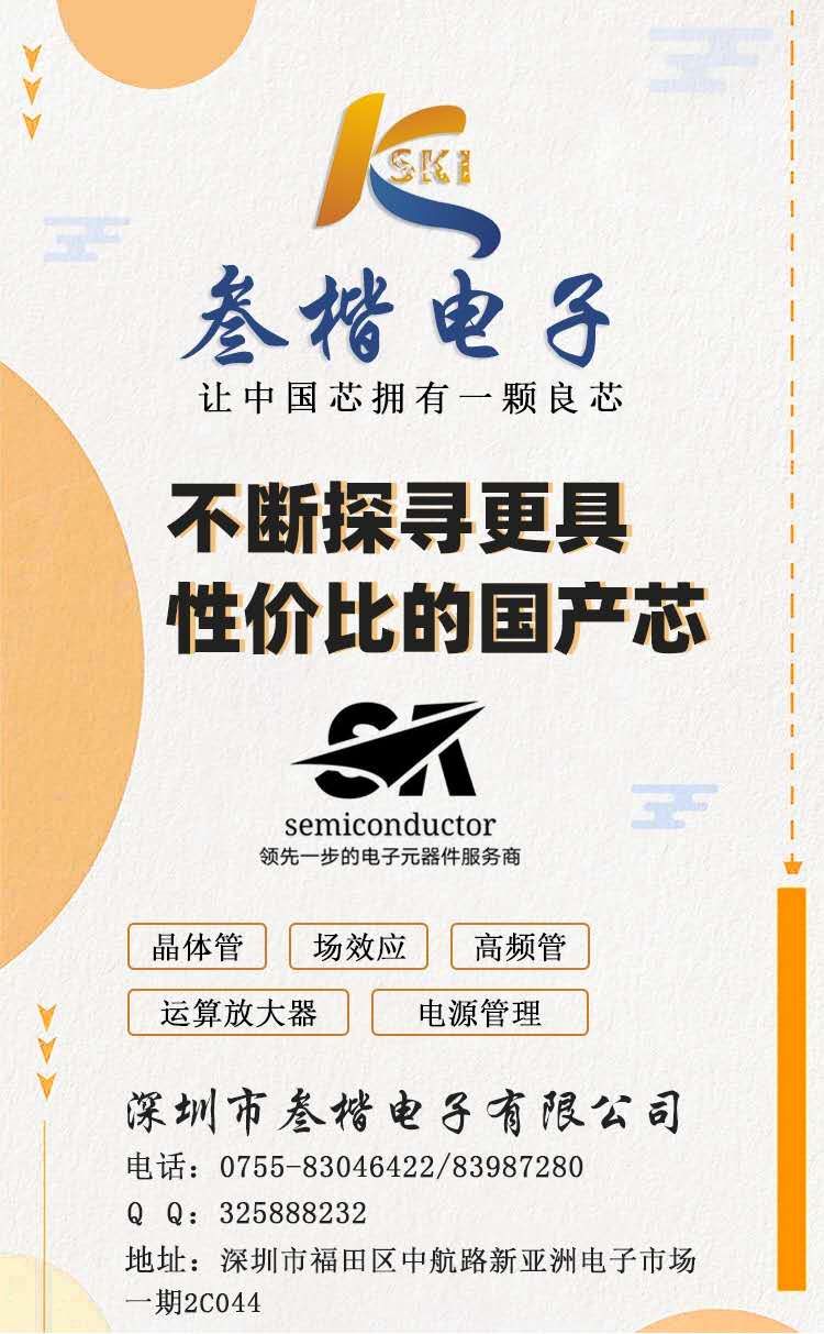 深圳市叁楷电子有限公司 MOS管/TVS管/ESD保护管/高频管/场效应管/变容管/电源IC,二三极管等SMD,产品主要应用于民用、工业、军事领域的通讯、网络、仪器仪表、电脑、电视、VCD/DVD、音响、IT等。优势的库存价格和可靠的质量与真诚的服务给我们赢得广泛的客户,欢迎业界人士来电来人咨询。0755-83046422 为客户提供大量的库存。 为客户提供产品的配单、订购业务。 为客户寻找冷偏、急缺器件。 部分接受订货